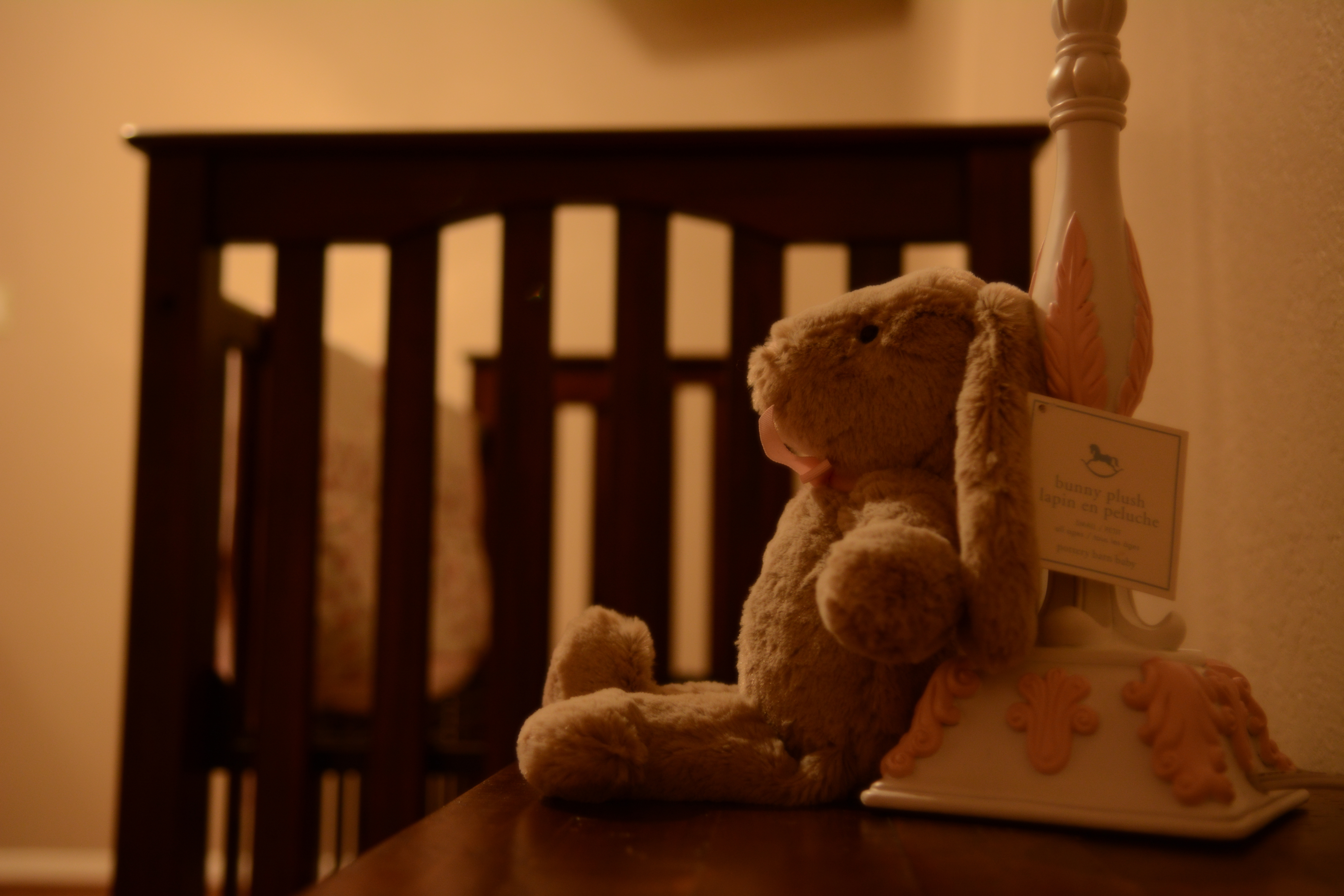 Bobby came home from New Orleans today.  He put together her crib that I bought a few days ago.  We went with an entirely different look and different crib as apposed to what I posted in the previous posts.  I just couldn’t seem to make up my mind. But I finally did.  We went with some really beautiful pieces from Pottery Barn Kids/Baby.  I am so excited for it to all come together in the coming weeks and to post all of the progress photos.  For now, here is a peek at the cute lil bunny I bought Baby Girl Sock.  It is so soft, so cuddly and so cute!